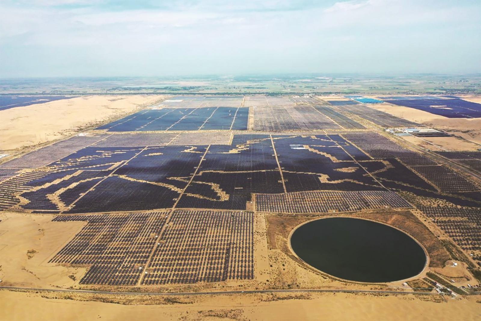 2025年6月,位于库布其沙漠的达拉特旗光伏基地(无人机照片)。 新华社记者 李志鹏 摄
