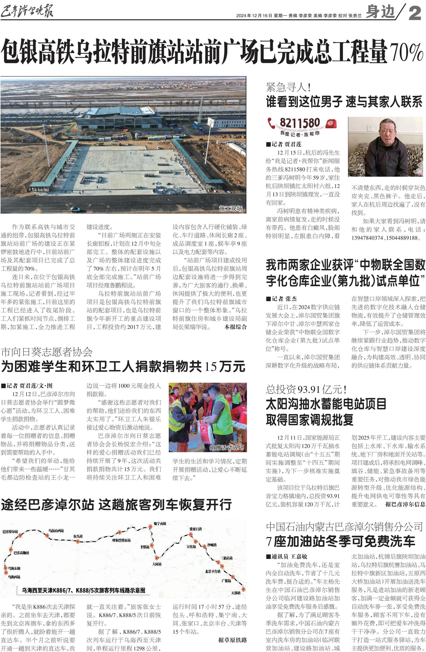 乌拉特前旗站站前广场项目是包银高铁乌拉特前旗站的配套项目,也是乌拉特前旗今年新开工的重点建设项目,工程投资约2017万元,建设内容包含人行硬化铺装、绿化、车行道路、休闲长廊2座、成品调度室1座,候车亭9座以及电力配套等内容。