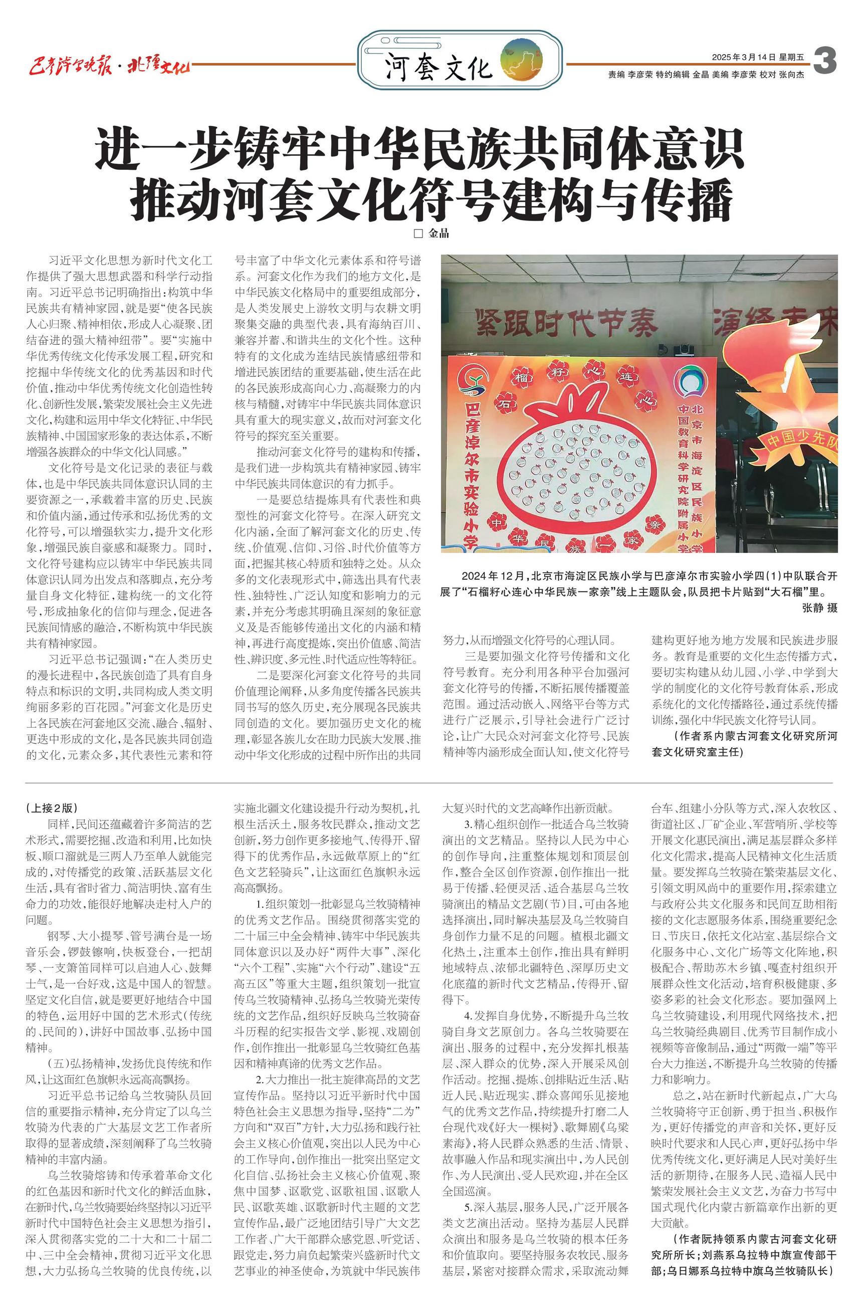在新的条件下,各乌兰牧骑队伍、文艺院团,要准确把握回信精神实质,在新时代下更好地为服务基层群众中出新招实招,在新一轮机遇中展现生命力,而不是盲目追赶乌兰牧骑形式的末班车。不盲目编创排演所谓的大手笔、大耗费、高档次的节目。
